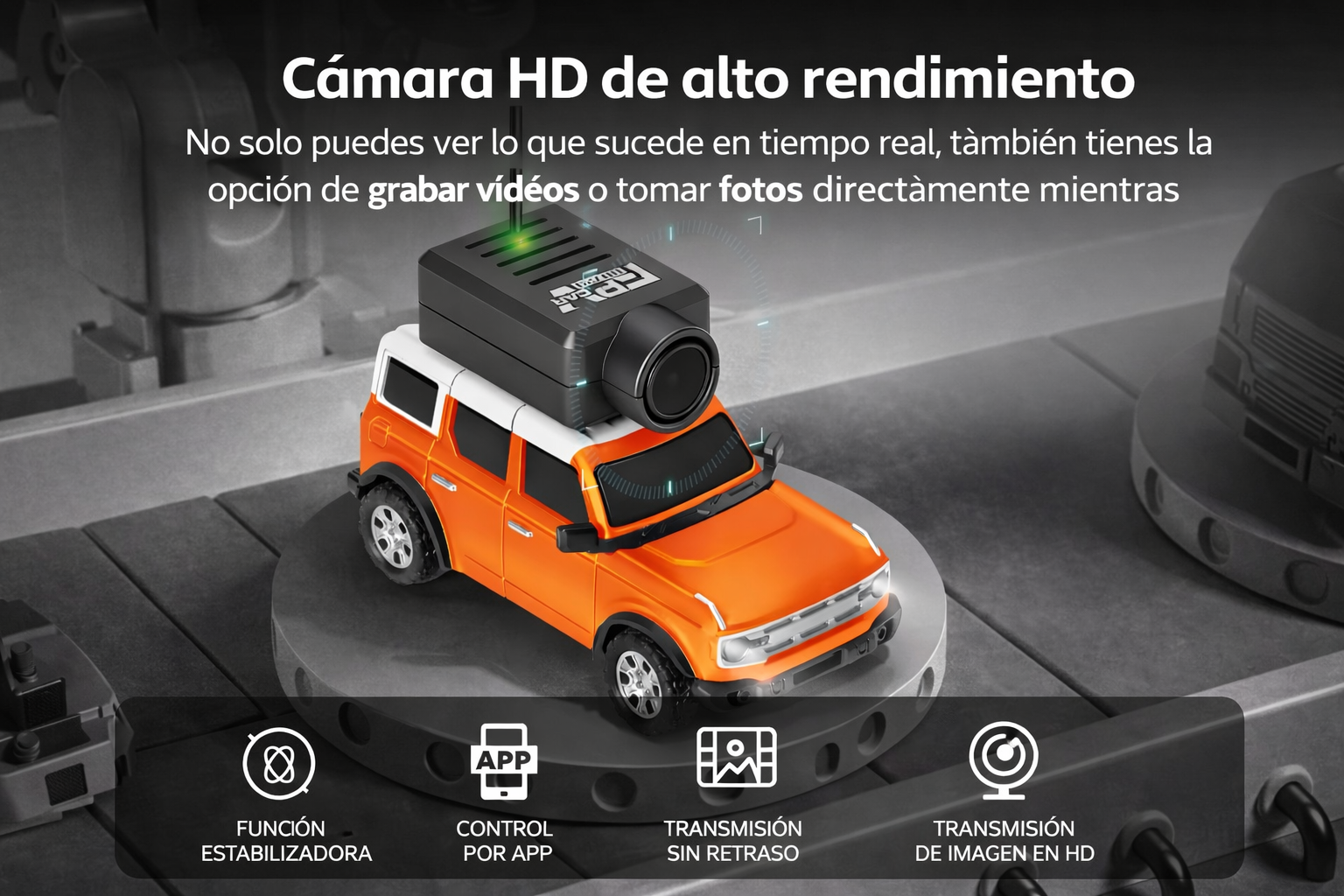 Al encender el coche y colocar la cámara FPV, esta genera su propia red Wi-Fi. Solo necesitas conectarte a esa red desde tu teléfono y abrir la app para comenzar a ver y controlar el coche en tiempo real. No hace falta disponer de conexión a internet ni datos móviles.